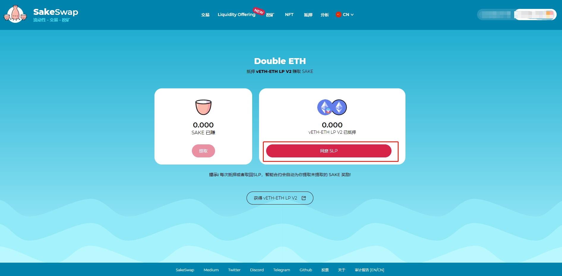 如果钱包内同时拥有vETH以及ETH,访问添加流动性页面Add Liquidity https://sakeswap.finance/#/add/ETH